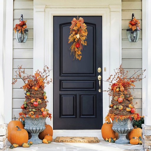 2. Rozmiar dekoracji jesiennej: 60 cm/24 cale. Wianek idealnie nadaje się do jesiennych dekoracji i obchodów Święta Dziękczynienia. Nadaje się do drzwi wejściowych, ścian, okien i domów wiejskich. Może wnieść do Twojego domu odrobinę jesiennych kolorów.