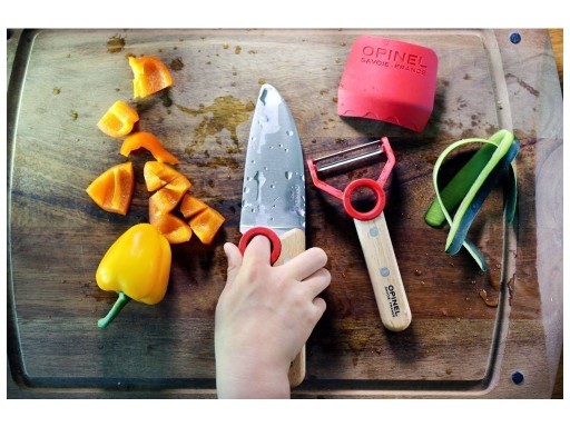 Dziecięcy zestaw kuchenny - nóż, skrobaczka i ochraniacz na palce