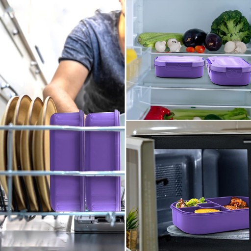 ✅️Pudełko na drugie śniadanie ma pojemność 1300 ml i jest wyposażone w 4 przegródki, w których można umieścić różne rodzaje żywności.
