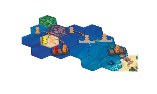 - Fazę akcji, podczas której poruszają się poszukiwacze skarbów lub tratwy. W dowolnym momencie tej fazy gracz może też odrzucić dowolną liczbę płytek wyspy, które ma przed sobą, aby skorzystać z ich zdolności.
