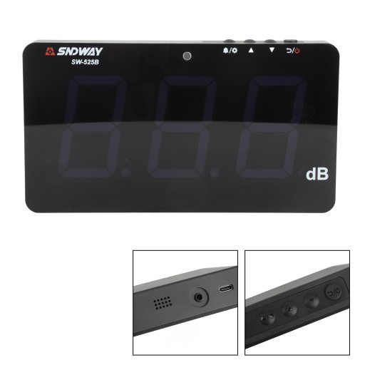Zasilany przez USB 9,6-calowy cyfrowy miernik poziomu dźwięku LCD wiszący na ścianie 30-130 dB Tester hałasu