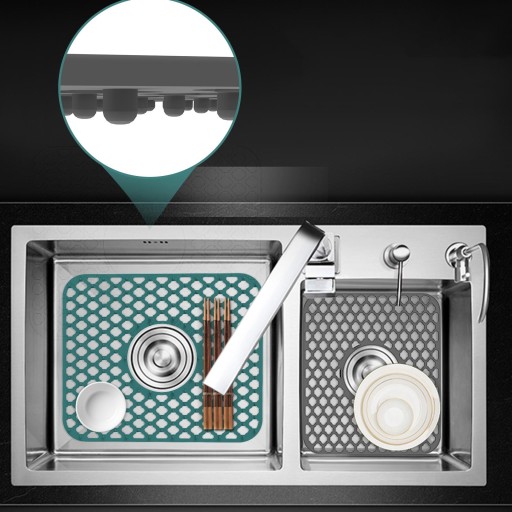 Mata do suszenia naczyń: Również jako mata do suszenia Kratka zlewu ma otwór na odpływ atramentu i pasuje do otworu spustowego zlewu z podwójną lub pojedynczą miską.