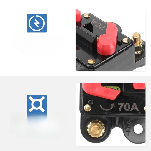✅1 x 70 A przerywacz automatyczny silnik do trolingu Auto samochód łódź morska rower stereofoniczny terminal audio wbudowany bezpiecznik falownik z ręcznym resetowaniem