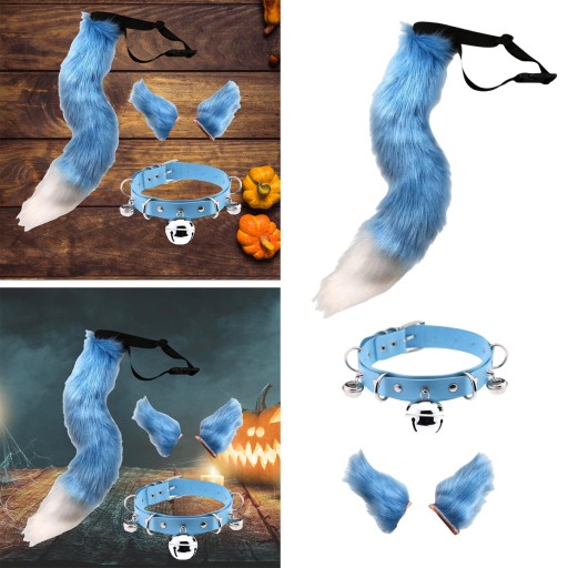 Sztuczne uszy i ogon zestaw przebranie na karnawał na prezent na Halloween niebieski