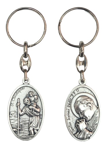 БРЕЛОК СО СВЯТЫМ КРИСТОФОМ И ПАПОЙ JP2 ПОКРОВИТЕЛЬ ВОДИТЕЛЕЙ ДЛЯ АВТОМОБИЛЕЙ ИТАЛИЯ