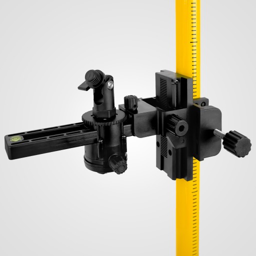 - Platforma na urządzenie pomiarowe z regulacją: wyposażona w regulację kąta, a także poziomą i pionową regulację po platformie. Dodatkowo, posiada wbudowaną libellę oraz możliwość zamiany gwintu przyłączeniowego z 5/8 cala na 1/4 cala, co pozwala na montaż różnorodnych urządzeń.