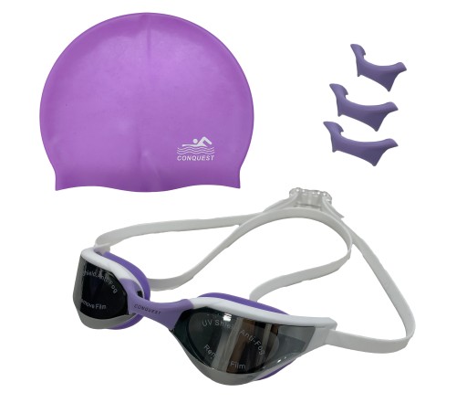 CZEPEK PŁYWACKI W KOLORZE FIOLETOWYM CONQUEST 100% SILIKON + OKULARY PŁYWACKIE CONQUEST COMPETITION