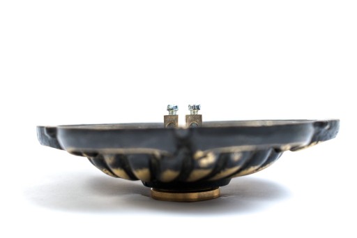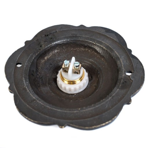 Rozeta odlana z mosiądzu, utrzymana w połysku, z patyną w zakamarkach, mocowana na 2 wkręty. Przycisk dzwonkowy również wykonany z mosiądzu, czoło przycisku matowane, klasa szczelności IP43. Przycisk daje możliwość sterowania urządzeń niskiego i wysokiego napięcia takich jak: dzwonki, domofony, zamki elektromagnetyczne. Rozeta i przycisk pokryte lakierem zapobiegającym utlenianiu się mosiądzu. Produkty polskie — wspieramy polskie rzemiosło.