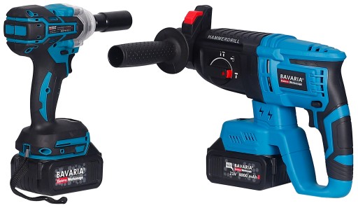Wszechstronny zestaw narzędzi akumulatorowych renomowanej marki BAVARIA przygotowany w ramach linii narzędzi akumulatorowych , który umożliwia korzystanie z licznych narzędzi, które będą zasilane jednym typem akumulatorów.