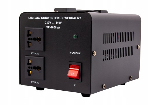 Uniwersalny konwerter napięcia VP 1000 230/110V służy do obniżania napięcia zmiennego AC-230V do napięcia zmiennego AC-110V lub do podwyższania napięcia zmiennego AC-110V do napięcia zmiennego AC-230V. Wyjątkowo przydatny w sytuacji kiedy chcemy zasilić sprzęt pochodzący z USA, Japonii.