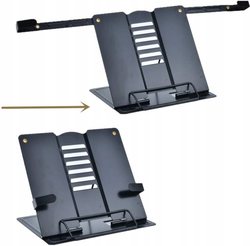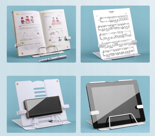 Solidna metalowa półka na książki składa się w zakresie od 0 do 60 stopni i dostosowuje się do sześciu kątów czytania. Może być używany do tabletów, książek kucharskich, podręczników, nut, zdjęć, czasopism i innych.