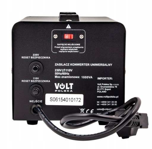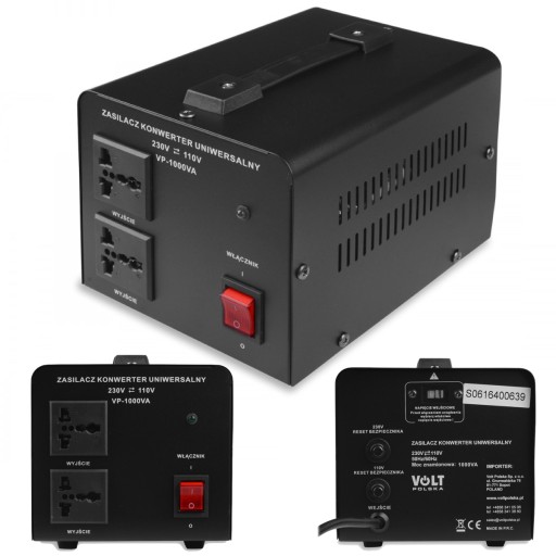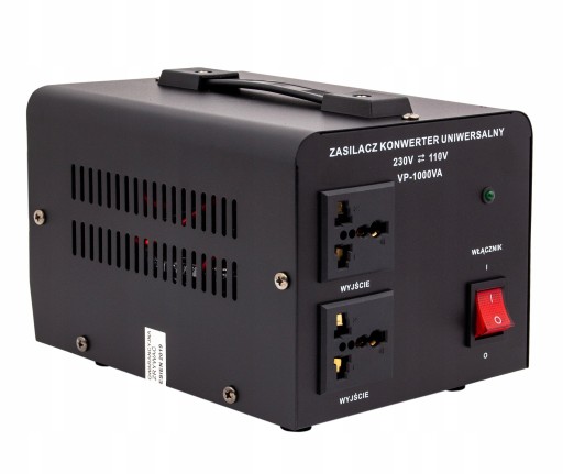 Uniwersalny konwerter napięcia VP 1000 230/110V służy do obniżania napięcia zmiennego AC-230V do napięcia zmiennego AC-110V lub do podwyższania napięcia zmiennego AC-110V do napięcia zmiennego AC-230V. Wyjątkowo przydatny w sytuacji kiedy chcemy zasilić sprzęt pochodzący z USA, Japonii.