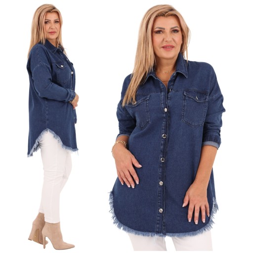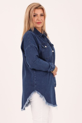 Jeansowa koszula damska z delikatnym strzępieniem u dołu
