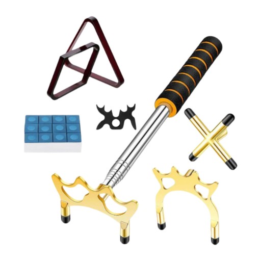 [Kompleksowy zestaw akcesoriów bilardowych]: Każdy pakiet zawiera 1 wysuwany kij bilardowy, 4 zdejmowane główki mostka, 1 stojak trójkątny, 1 stojak w kształcie rombu, 12 kredek do kijów bilardowych, co zwiększa funkcjonalność pokoju gier lub baru.