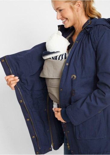 Informacje dodatkowe: Modna parka ciążowa z wstawką na nosidełko niemowlęce i praktycznymi dużymi kieszeniami. Lekka parka ciążowa idealna przejściową porą, z wstawką na nosidełko chroniącą dziecko przed zimnem i wiatrem.