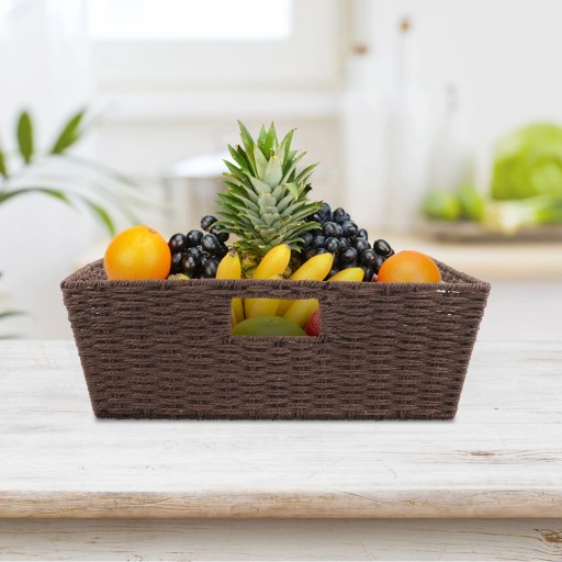 Opis Jest pleciony kosz, który wygląda bardzo pięknie. Wykonany ze słomy, ten kosz do przechowywania jest trwały i można go używać przez długi czas. Kosz nadaje się do przechowywania warzyw, książek, teczek i przekąsek. Tkany wzór sprawia, że wydaje się bardziej rustykalny i kreatywny.