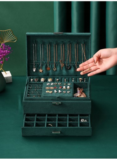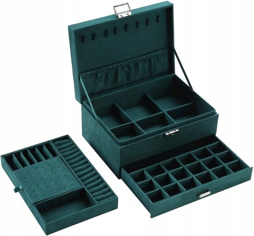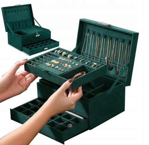 ELEGANCKI ZIELONY KUFEREK / POJEMNA SZKATUŁKA NA BIŻUTERIĘ