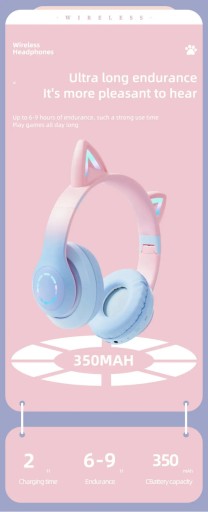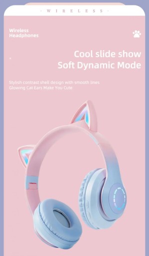 - Słuchawki Flash Cute Cat's uszy (pieczywo w kształcie kota) Bezprzewodowy zestaw słuchawkowy z mikrofonem Stereo Muzyka Telefon Słuchawkowy dla dzieci TWS 5.0 Opis: 1. Typ: Wireless+Wired (produkt obejmuje 3.5mm AUX) 2. BT: V5.0+EDR (dozwolony tryb: A2DP 1.2 AVRCP 1.0、HSP、HSF 1.5 3. Mikrofon: Tak 4. Tryb uszu kota: Gradient LED Light 5. Składana konstrukcja: wygodne przechowywanie, łatwa podróż 6. Inteligentna redukcja hałasu, materiał przyjazny skórze 7. 40mm dźwięk dwucewkowy 9. Czas ładowania: około 5 godzin 10. Pojemność baterii: 350mAh 11. Godziny pracy: około 8godzin Specyfikacje: 40mm duży głośnik z mocnym basem Owinowane skórzane poduszki uszne zapewniają długotrwały komfort Aktualizacja 5.0, wydajna i płynna gra kontynuuje Niskie zużycie energii, nieprzerwane wyjście ciągłe 60H Przyciski boczne, obsługa na wyciągnięcie ręki Pakiet obejmuje: 1)Kanał słuchowy 1,5mm kabel audio 1,Kabel USB 1)Instrukcja 1 skrzynka pocztowa