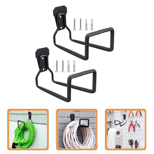 Te haczyki łatwo przyczepiają się do ścian drewnianych, betonowych lub ceglanych. Jest bardzo wszechstronny i można go użyć do zawieszenia wszystkiego, co chcesz. Doskonały do przechowywania okablowania, węży i przedłużaczy, nadaje się również do przechowywania ciężkich narzędzi lub wózków itp.