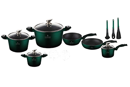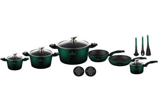 Zestaw garnków i patelni z powłoką marmurową 15 el. Edenberg EB-5628 w kolorze ciemnozielonym