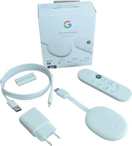 Chromecast 4.0 z Google TV to niewielkie urządzenie wyposażone w złącze HDMI, które oferuje strumieniowe odtwarzanie wideo w rozdzielczości 4K i 60 klatkach na sekundę na kompatybilnych wyświetlaczach. Ponadto, Chromecast 4.0 oferuje obsługę HDR w kilku formatach. Łączność bezprzewodową zapewniają moduły WiFi 5 oraz Bluetooth.