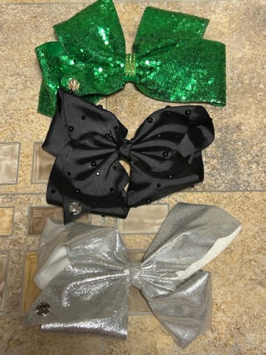 БОЛЬШИЕ Луки JoJo SIWA ЛУКИ 3 ШТ. ЗЕЛЕНЫЙ ЧЕРНЫЙ СЕРЕБРЯНЫЙ