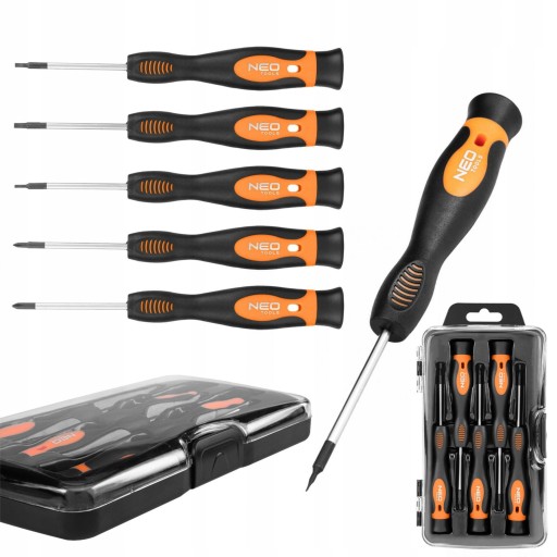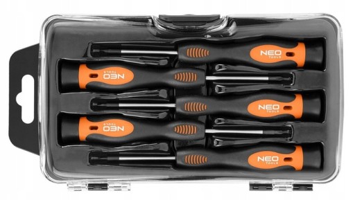 Wkrętaki precyzyjne, zestaw 5 szt. 04-224 marki NEO oferują w zestawie narzędzia w rozmiarach: 1,5 x 50 mm, 2 x 50 mm, 2,5 x 50 mm, PH00 x 50 mm, PH0 x 50 mm. Ich groty wykonane są z solidnej stali S2. Wkrętaki posiadają trójgraniaste kształty uchwytów z dodatkowo wyprofilowanym oparciem dla kciuka. Uchwyt pokryty jest również tworzywem TPR, odpornym na działanie chemikaliów, smarów oraz olejów mineralnych. Zestaw wkrętaków marki NEO tego rodzaju przeznaczony jest do precyzyjnej pracy. Będzie nieoceniony szczególnie w pracy elektryka oraz majsterkowicza w profesjonalnym warsztacie.