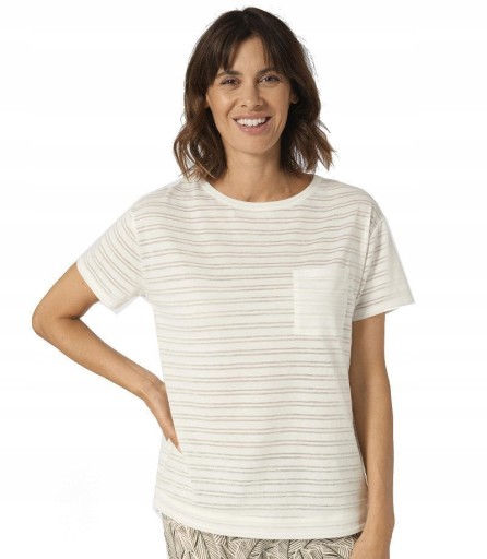 Lekka i delikatna koszulka o swobodnym fasonie z krótkimi rękawami zapewni Ci komfort oraz wygodę podczas ciepłych letnich nocy.