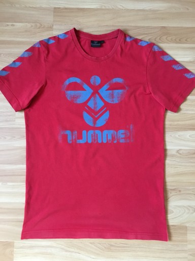 Markowy używany t-shirt firmy HUMMEL. Rozmiar z metki- YL. POLECAM!!! WARTO!!!