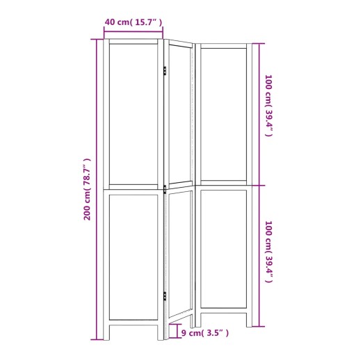 vidaXL Ширма для гостиной, 3 панели, темно-коричневый, массив дерева павловнии