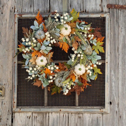 Materiał: jesienny wianek wykonany ze sztucznego materiału, doskonały do dekoracji drzwi, okien, ścian i kominków.