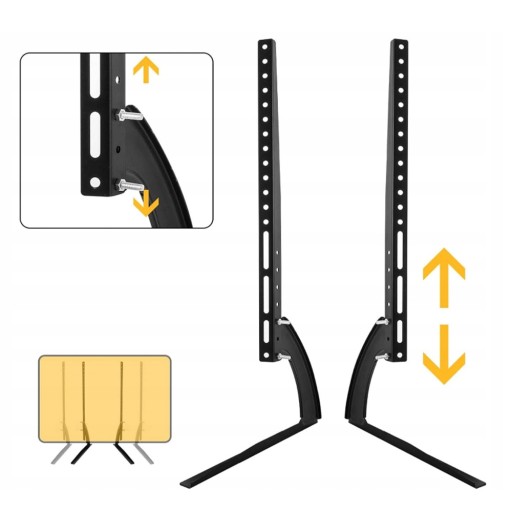 Uniwersalne nóżki do telewizorów, monitorów PC o przekątnej ekranu 22 27 30 32 37 40 42 47 50 55 60 63 65 cali; zgodność ze standardem VESA: od 50 mm x 50 mm do 800 mm x 400 mm; maksymalne obciążenie ekranu ok. 50 kg.