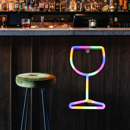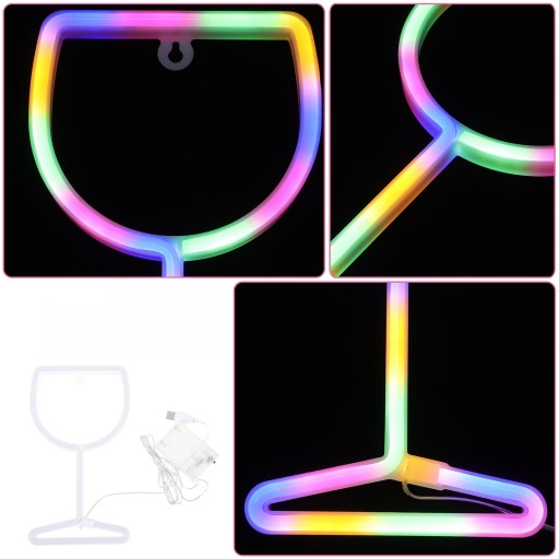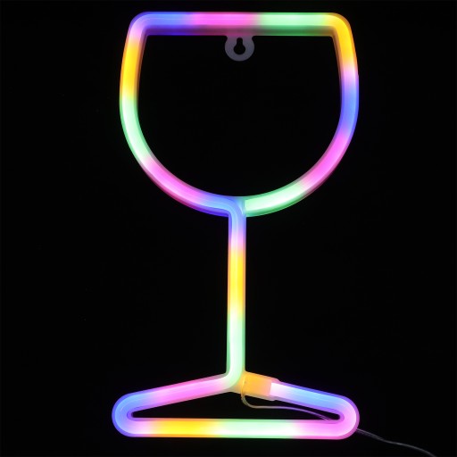 ✅Neon wymaga 3 baterii AA (brak w zestawie) lub ładowania za pomocą kabla USB, aby się zaświecił. Neon w formie kieliszka do wina sprawia wrażenie chłodnego i wygodnego.