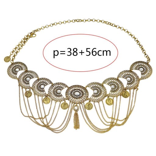 Vintage czeski Rhinestone Coin Tassel ślubny pas biodrowy złoty