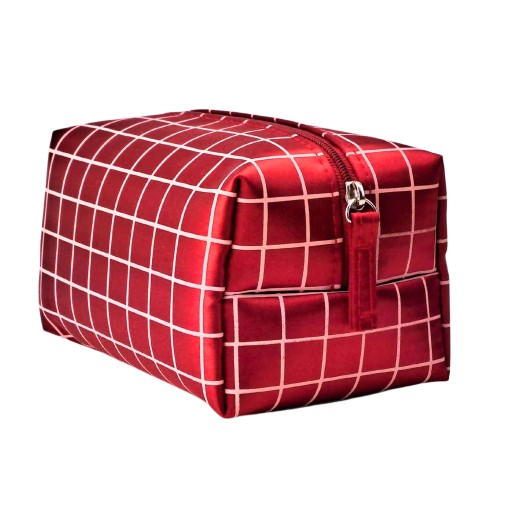 Mała kosmetyczka damska organizer na kosmetyki czerwona kratka NOBLE