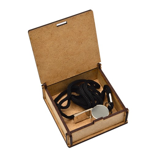 Gwizdek jest pakowany w eleganckie pudełko prezentowe, Jego wymiary to 10.5 x 10.5 x 3.5 cm