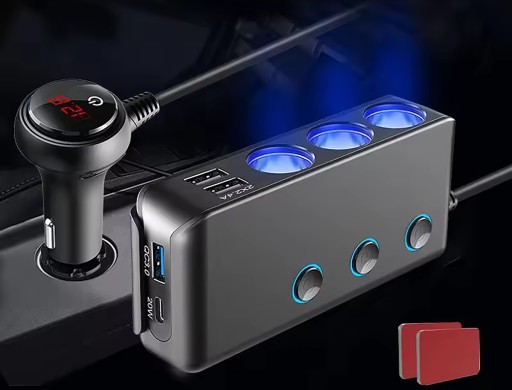 ROZDZIELACZ ROZGAŁĘŹNIK GNIAZDA ZAPALNICZKI 12-24V 3xUSB UBS-C PD ŁADOWARKA
