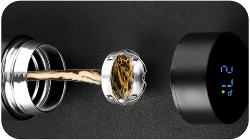 Najdokładniejszy odczyt temperatury uzyskasz, gdy przekręcisz zakręcony termos denkiem do góry i odczekasz chwilę. Dzięki temu napój wymiesza się i spłynie do czujnika.