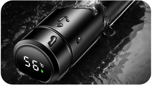 Dodatkowo znajduje się tam również oznaczenie w formie zielonej/czerwonej kropelki, które informuje czy temperatura płynu jest odpowiednia do bezpiecznego spożycia. Zielona kropelka pokazuje się dla temperatury 21°C - 60°C i oznacza, że płyn można bezpiecznie wypić. Czerwona kropelka dla temperatury 61°C - 99°C oznacza, że płyn jest gorący i należy go pić ostrożnie.