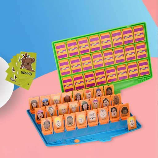 [Gra w zgadywanie]: Gracze wkładają małe karty na planszę, wybierają jedną z nich jako kartę zwycięskiej postaci, po kolei zadają sobie pytania i odpowiadają „tak” lub „nie”. zadając pytania, gracze stopniowo eliminują niemożliwe postacie, aż odgadną postać przeciwnika.
