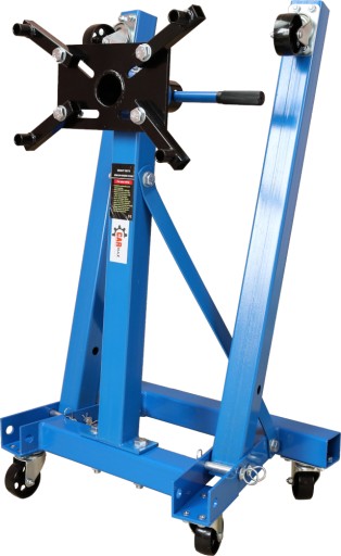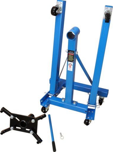 Stojak, za pośrednictwem 4 regulowanych łapek montowanych do bloku lub obudowy, umożliwia mocowanie silnika, skrzyni lub głowicy w celu dalszej obróbki. Stojak osadzony jest na 6 metalowych kółkach (4 skrętnych), co umożliwia swobodne przemieszczanie. Płyta montażowa jest wyciągana i umożliwia obracanie zamontowanego przedmiotu o 360° oraz jego zabezpieczenie przed samowolnym obracaniem.