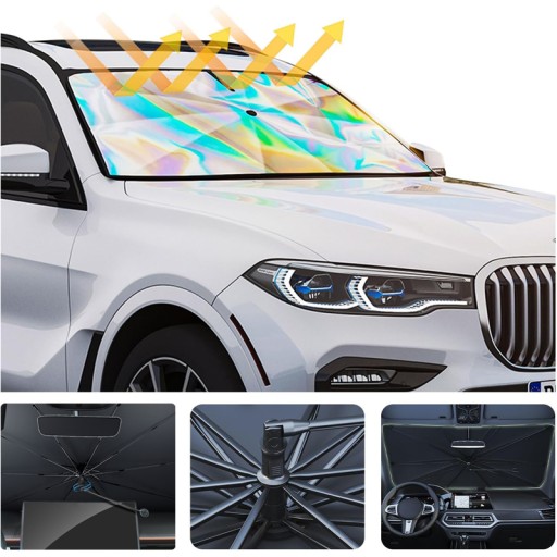- Parasol samochodowy może w 99% izolować i odbijać światło słoneczne i promienie UV oraz ma doskonałą wydajność rozpraszania ciepła. Doskonała ochrona przed blaknięciem i pękaniem wnętrza i deski rozdzielczej. Utrzymanie chłodu w samochodzie przez cały czas.