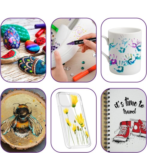 Zastosowanie produktu: Kamienie, muszle, szkło, ubrania, czapki, pudełka papierowe, liście, buty i inne materiały mogą być używane do malowania i majsterkowania