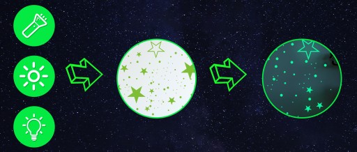 ⭐[Trwałe] Naklejki sufitowe z gwiazdami świecącymi w ciemności są wykonane ze specjalnej fluorescencyjnej folii luminescencyjnej. Przed świeceniem po prostu umieść świecące w ciemności gwiazdy i planetę na czystej powierzchni, włącz światło na 15-30 minut, a następnie wyłącz. Im dłużej naklejka z gwiazdami świecącymi w ciemności pochłania światło, tym dłużej będzie świecić.