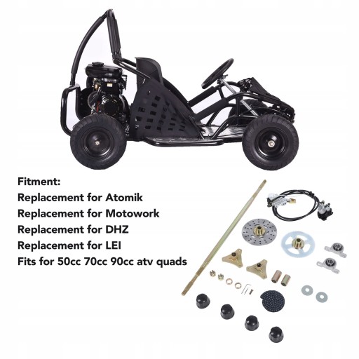 2. Szeroka kompatybilność: Zestaw tylnej osi czynnej gokarta ma zastosowanie do quadów ATV o mocy 50 cm3, 70 cm3 i 90 cm3, zapewniając szerokie możliwości adaptacji.