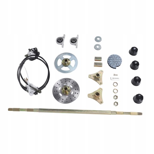 Komponenty: Oś tylna Łańcuch 428 Zębatka T8F 58T Zacisk hamulca Tarcza hamulcowa Łożysko osi Piasta ze śrubami