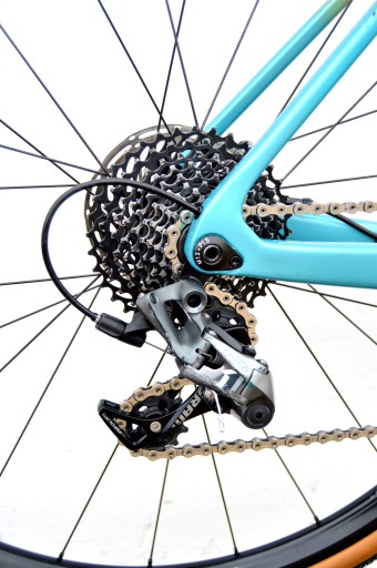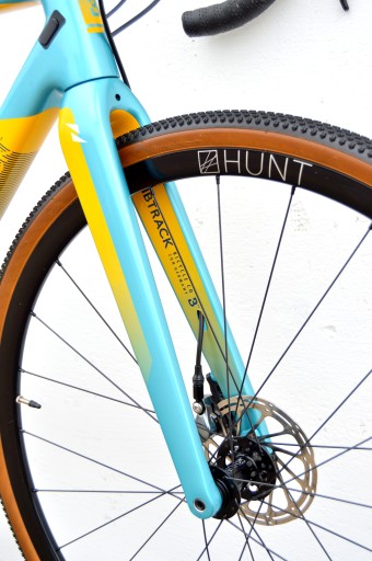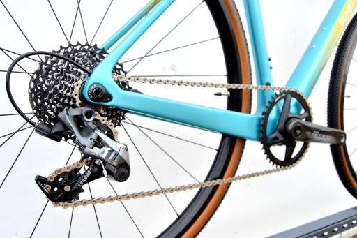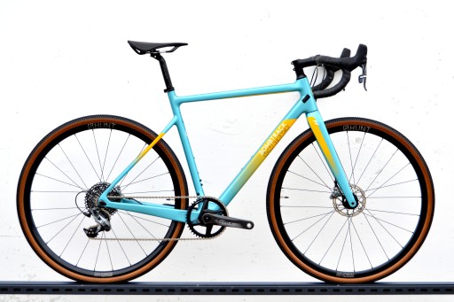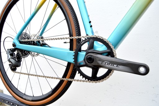 BOMBTRACK TENSION C jest sztywny, lekki i zwrotny. Będziesz przyspieszał żwawiej, skręcał bardziej agresywnie i pokonywał szutry szybciej. Masa ramy to około 1060g czyli tyle co dobre ramy szosowe. Rama zbudowana jest z kilku rodzajów włókien węglowych TORAY T700/T800 Hi-Mod carbon o różnej charakterystyce. Połączone w odpowiedni spósób pozwalają osiągnąć niezwykłą charakterystykę i sztywność bez zmniejszenia wytrzymałości. Obniżony tylny trójkąt ramy pozwala rurkom dodatkowo absorbować drgania w tylnym trójkącie poprawiając trakcję, prowadzenie i komfort oraz niwelując utratę prędkości na nierównościach, przy jednoczesnym zachowaniu sztywności poprzecznej. Poszerzana główka ramy w standardzie tapered mieści carbonową rurę sterową o zwiększonej średnicy, takie rozwiązanie zapewnia idealne połączenie sztywności i niskiej masy. Hamulce tarczowe zapewniają stałe działanie i niezawodność niezależnie od pogody oraz więcej miejsca na zabłoconą oponę. Dodatkowo górne rurki tylnego trójkąta mogą lepiej amortyzować nierówności niż w canti. Egzotyczny i ponadprzeciętnie dopracowany model o świetnych właściwościach jezdnych w wyjątkowej wersji kolorystycznej. Napęd Sram Force 1x11 poradzi w wyścigu gładko podciągając biegi nawet pod sporym wzniesieniem. Dobra sztywność to zasługa lekkiej korby z carbonowymi ramionami. Maksymalną precyzje hamowania osiągnięto dzięki zastosowaniu w pełni hydraulicznego zestawu Sram Force. Seryjne koła HUNT 4 SEASON V2 prezentują poziom, który niezwykle rzadko spotyka się w fabrycznych rowerach. Zamontowane opony z Tan Wallem to 37-622, a rama ma jeszcze wolną przestrzeń. Pewność prowadzenia w czasie dynamicznego pokonywania wzniesień to element, który deklasuje leniwe gravele w zestawieniu z Tensin C. Zwrotność, efektywność i frajda z jazdy jest ponadprzeciętna. Kaseta 11-36 dobrze współgra z blatem 42t. Rower kilka jazd temu przeszedł przegląd hamulców. Całość działa bardzo dobrze. Nowoczesne siodło Selle Italia X nadej mu charakteru. Spłaszczana kierownica Ritchey jest wyjątkowo przyjemna w górnym chwycie. Obręcz posiada ślad po dobiciu opony, jednak nie jest to odczuwalne w czasie jazdy i nie stanowi problemu.