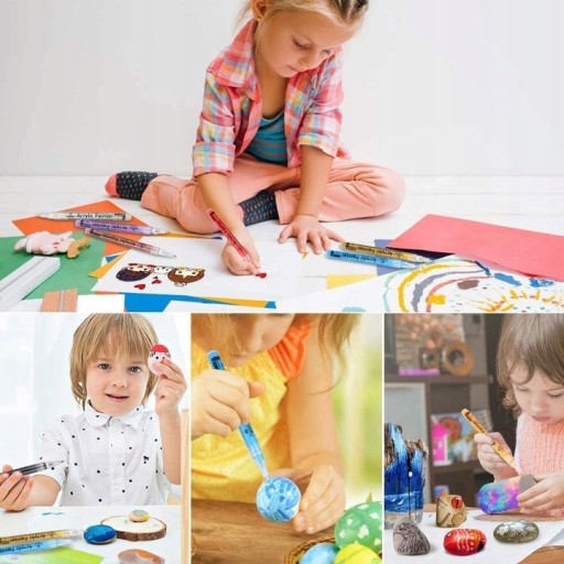Akrylowe Pisaki na płótno rozlewają się płynnie i doskonale kryją. Doskonały do rzemiosła lub tworzenia grafiki na prawie każdej powierzchni, dzięki czemu możesz bez wysiłku pisać na: