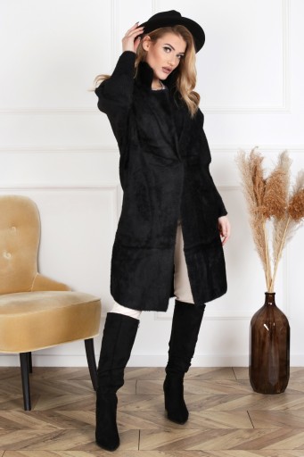 PŁASZCZ KURTKA DŁUGI SWETER NARZUTKA ALPAKA CIEPŁA WYGODNA CZARNY 1943