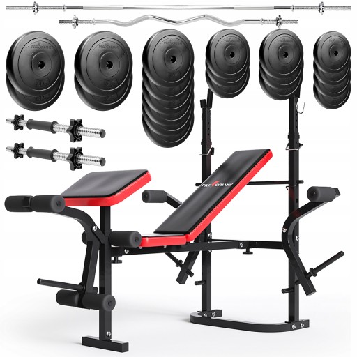 ✔️ Zawierający regulowaną ławkę, gryf prosty, gryf lekko łamany, krótkie gryfy do hantli oraz ciężarki o łącznej wadze 90 kg, ten zestaw jest idealny dla każdego, kto szuka profesjonalnych rozwiązań do intensywnego treningu w domu.